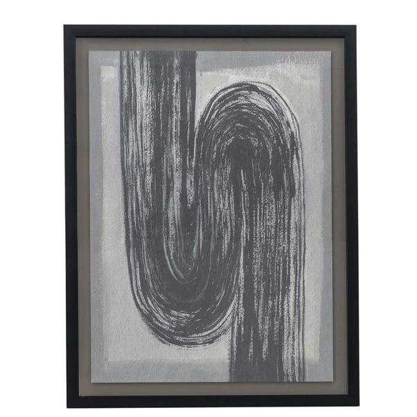 Bringing a free-flowing addition to your living space, the Winfield Abstract Charcoal Framed Art can enhance your blank wall space with this abstract artwork featuring a contrasting black and white shape set in a complementary clean black frame for a detailed but unobtrusive display.