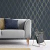 Featuring a shattered fractal inspired design, this luxurious wallpaper is finished in a fashionable navy colourway, with metallic silver highlights. Crafted from a luxury textured vinyl, this wallpaper would be ideal for a feature wall or used to decorate the whole room.