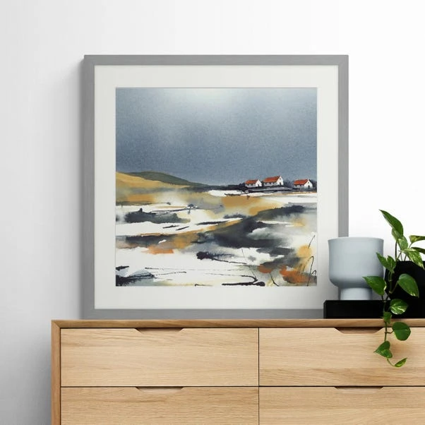 Decorate your home with this abstract style print by Elizabeth Baldin, inspired by Scottish coastal scenes. With muted colours and ambiguous scenes featuring in this artwork, it’s easy to add this piece anywhere in the house for a subtle piece of décor and silver frame which adds a contemporary finish to this modern style of artwork.