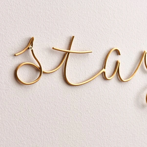Bring a stylish touch to your home with this funky wire design wall art. Complementing an array of decors, the gold colourway and wire words make this piece ideal for any room of the house with its colour board packaging, as well as being light and easy to install.