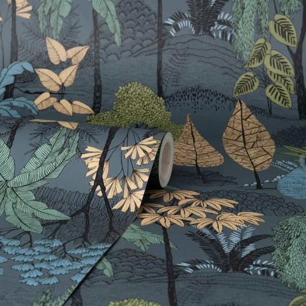 Dunelm Tropical Island Navy Wallpaper