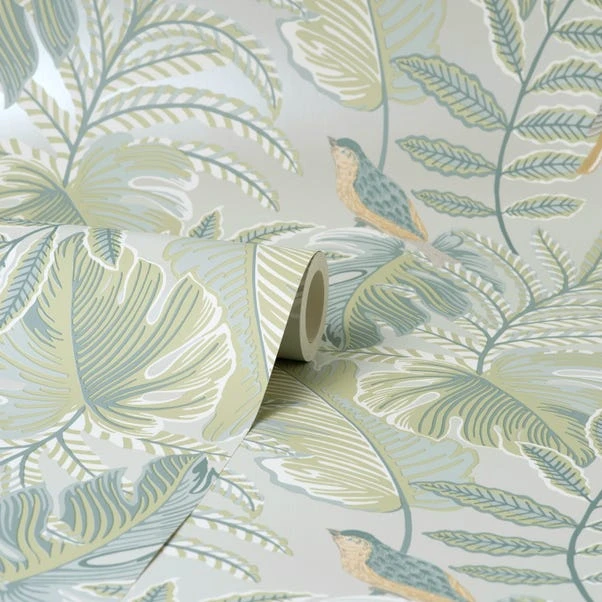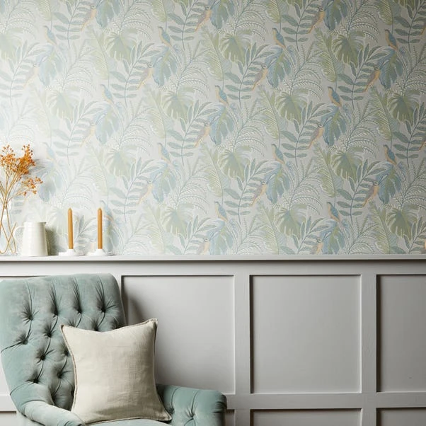 Dunelm Tropical Pastel Grey Wallpaper