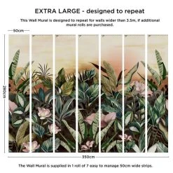 Featuring a warm and colourful vintage inspired tropical leaf design, this wall mural is perfect for creating a beautiful feature wall in any room. Boasting easy paste the wall application and a wipe clean surface, this mural is also designed to repeat for walls wider than 3m if additional mural rolls are purchased.