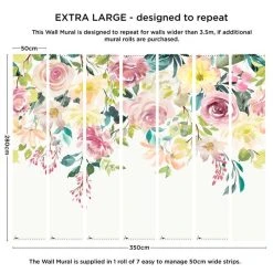 With it’s pretty watercolour style floral design, this fabulous mural offers an easy way to upgrade your space with a bold new style. Boasting easy paste the wall application and a wipe clean surface, this mural is supplied in one roll of 6 easy to manage 50cm wide strips. This wall mural also features a repeating pattern across multiple rolls, making it perfect for any size room.