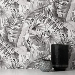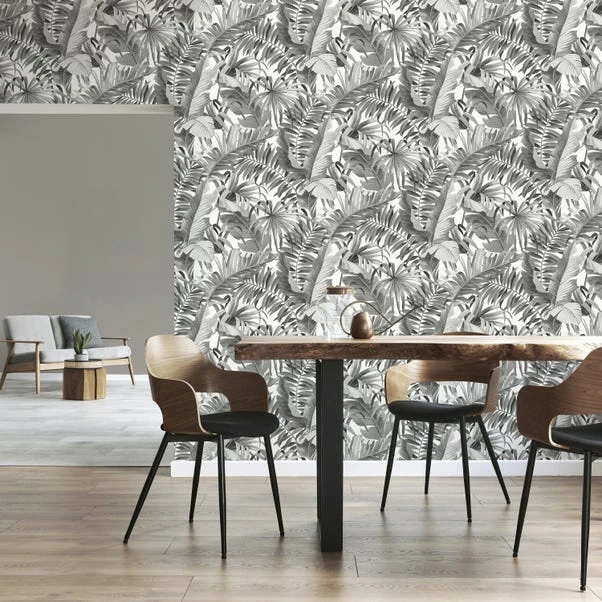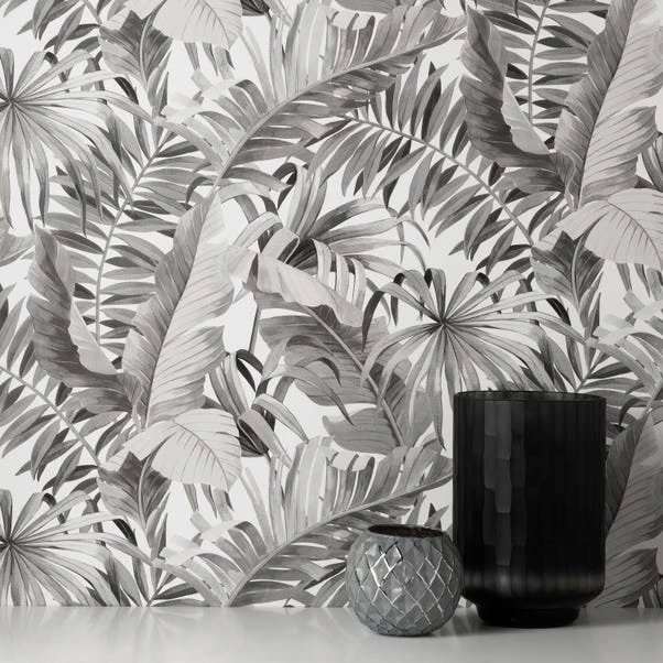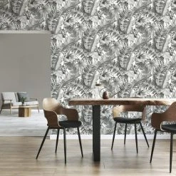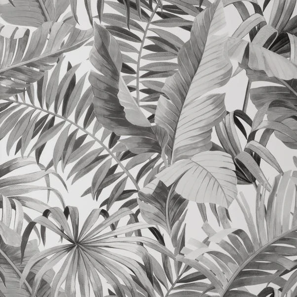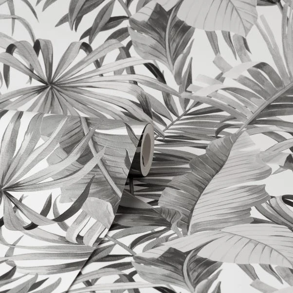 Transform your space with a tropical foliage theme in this monochrome toned wallpaper. Featuring a selection of jungle style leaves layered and arranged upon one another, this wallpaper can both create a statement and also subtly blend into the background with a neutral camouflage effect. Using matt inks and 150G paper to create this smooth finish paste the paper wallpaper, you can be sure to give your home a fresh new feel.