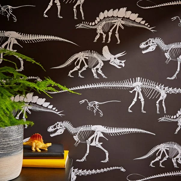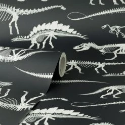 The Fossil Forager Black Wallpaper has been designed with kids in mind. We’ve come together to create some extra special designs inspired by the Museum and its enormous, astonishing and mind-blowing dinosaur and oceanic collections! We’re on a mission to celebrate the wonder of nature so every piece in this collection has been designed to utilise our resources in the best way possible, to be respectful of the natural world and help protect its future.